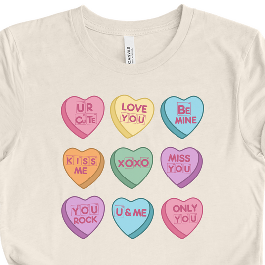 Science Valentine Candy Hearts T-Shirt, Be Mine Shirt, Conversation Hearts, Gift for Her, Periodic Table, Breaking Bad, XOXO Shirt