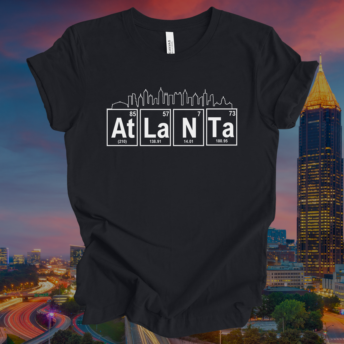 Introducing our "Atlanta Shirt" – the perfect blend of chemistry and city pride for all you science enthusiasts out there! This unique periodic table shirt spells out "Atlanta" using elements from the periodic table, adding a cool and scientific twist to your city pride. Heading to or from the Peach State? Don't forget to grab this unique Atlanta souvenir. It's more than just a shirt; it's a piece of Atlanta's science-infused charm that you can wear with pride.