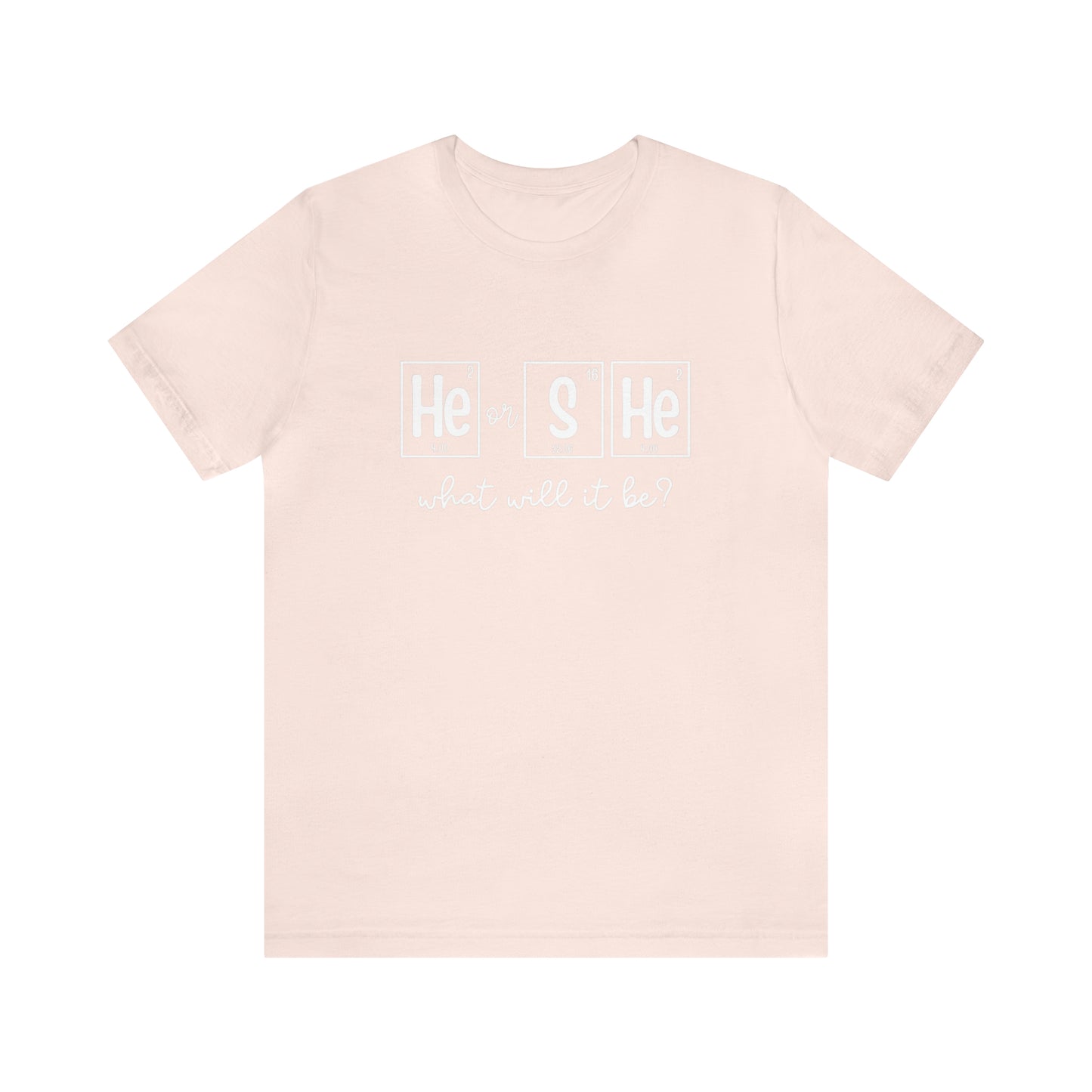 Hey there, science enthusiasts and future parents! Get ready to reveal your little scientist's gender with our "He or She" Gender Reveal T-Shirt, creatively designed using the periodic table. This tee adds a touch of scientific charm to your special announcement! Wear it during your gender reveal party, capture the joyful moment in photos, and share your love for science with your little one right from the start.